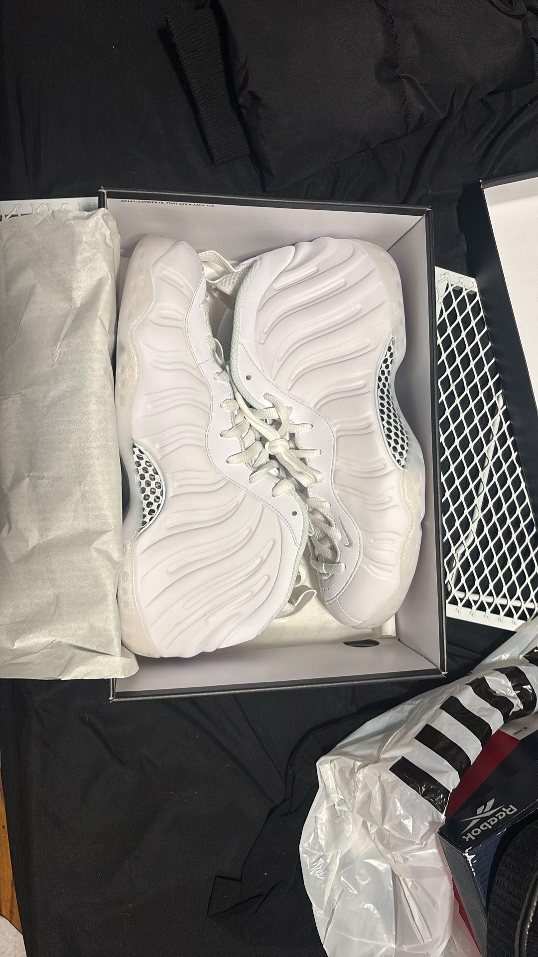 Brand New All White Foamposite One size 10.5 in box with receipt 320.00