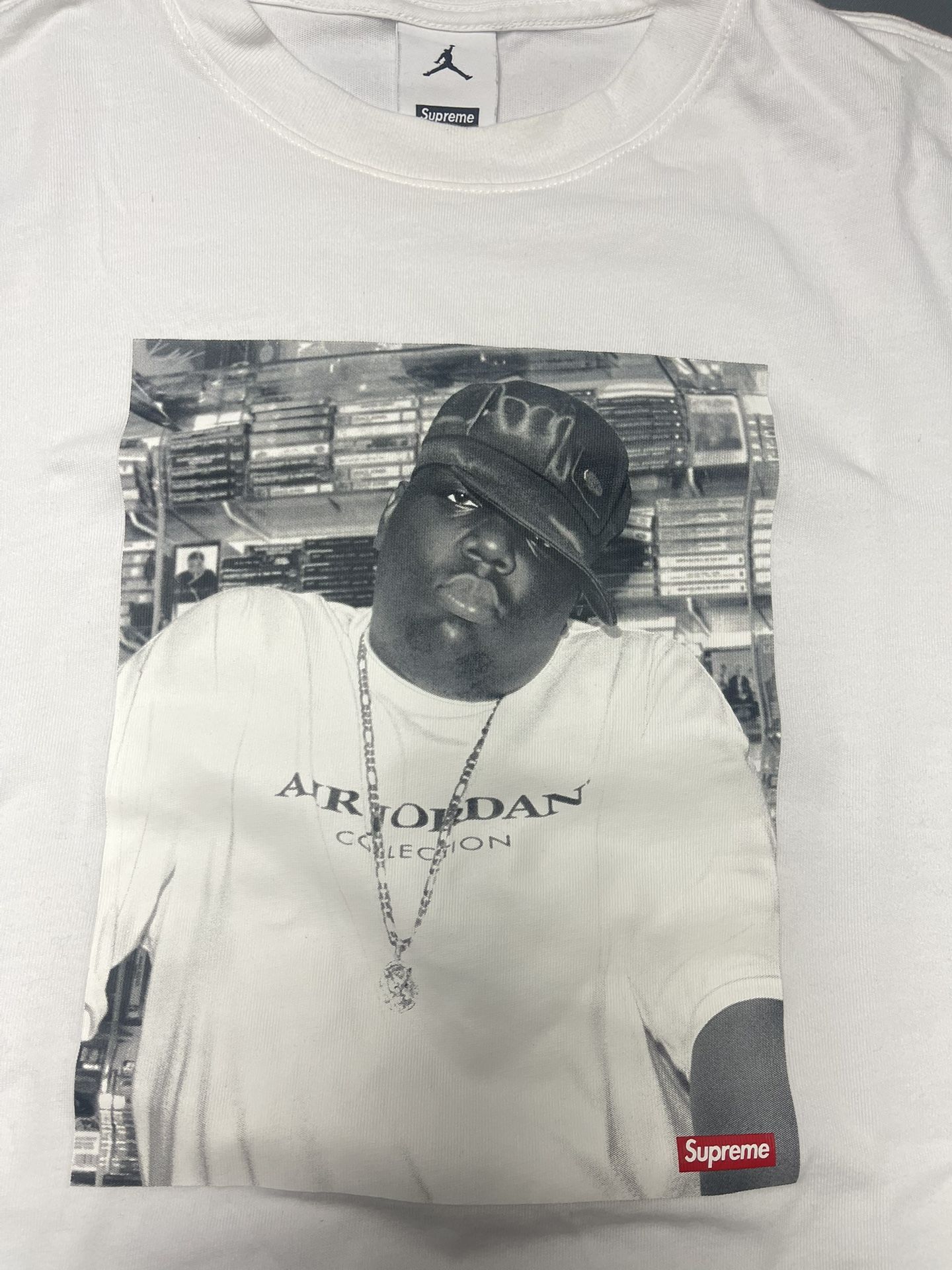 Men’s Supreme x Nike Air Jordan The Notorious B.I.G. Biggie T-Shirt Tee White - Small. Non smoker and non pet owner. I’m not looking for trades. Low ball offers will get you blocked. Don’t ask for my phone number, iMessage or me to email the photos to someone else. I’ll report you.