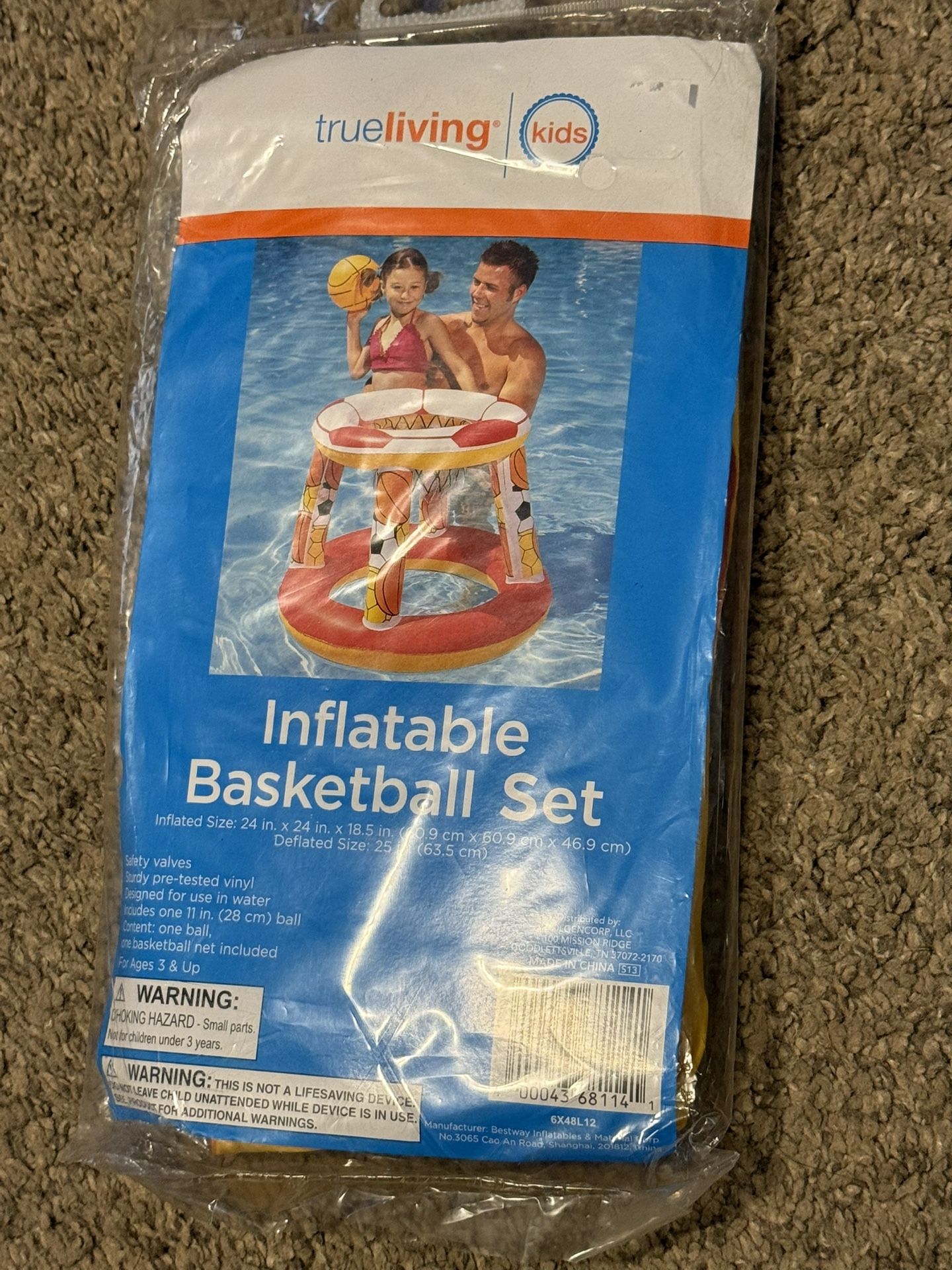 New! Inflatable basketball set - an be used in or out of water (pool). Has an opening on bag, but not used.
