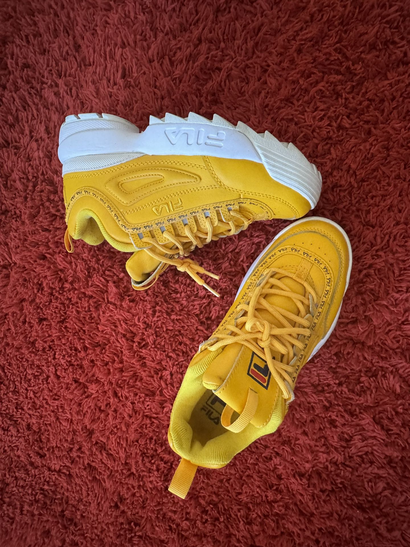 Yellow and white Fila’s. Only worn twice. Priced as $80-$100 online. Size 6 1/2 going for $35