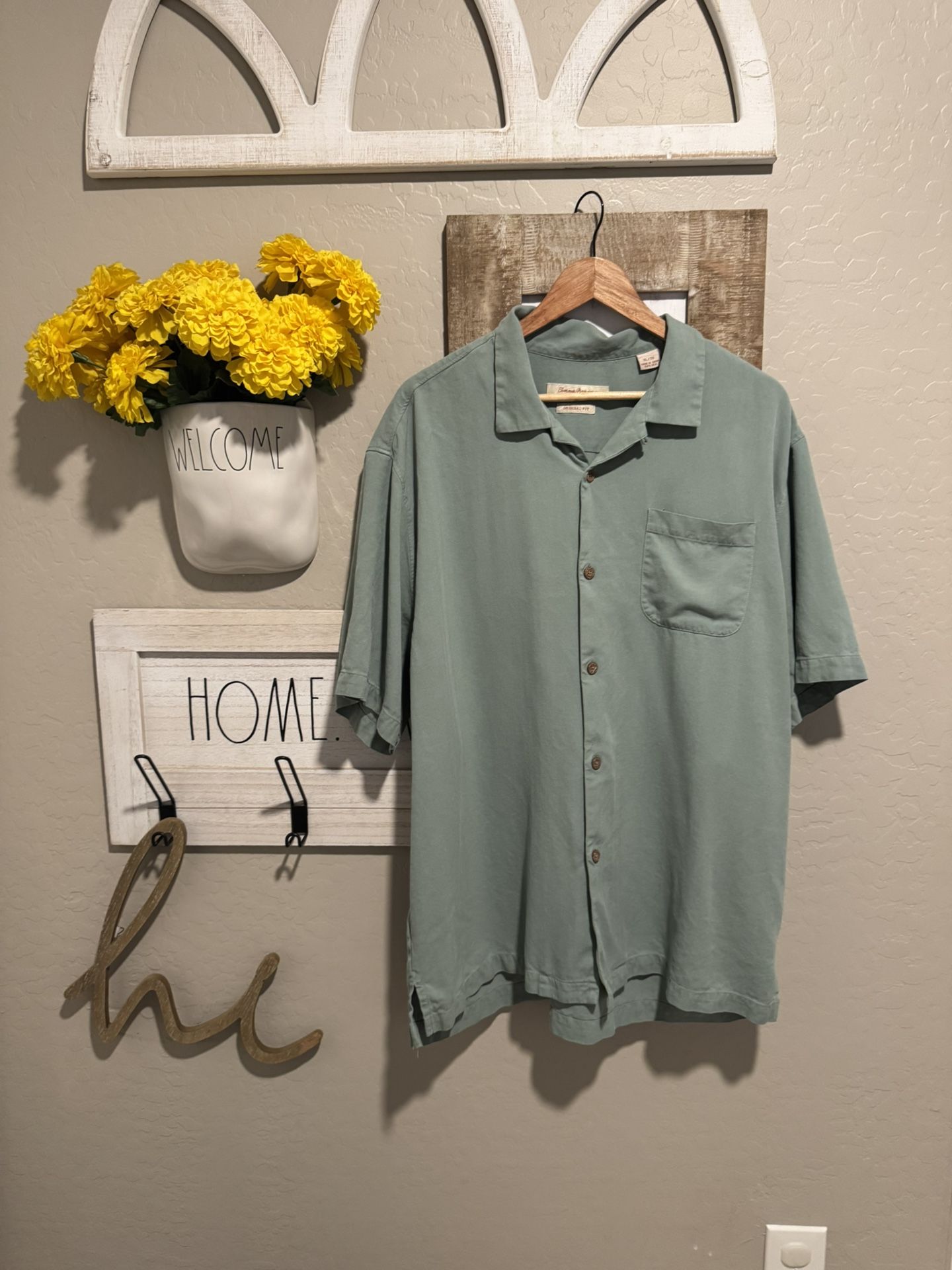 Tommy Bahama original fit sz xl 100% silk Good condition- some wash wear and stains haven’t treated 26” ptp 30” length Still looks great on!!! No holds First come basis Yes it’s available pickup in buckeye off watson and yuma