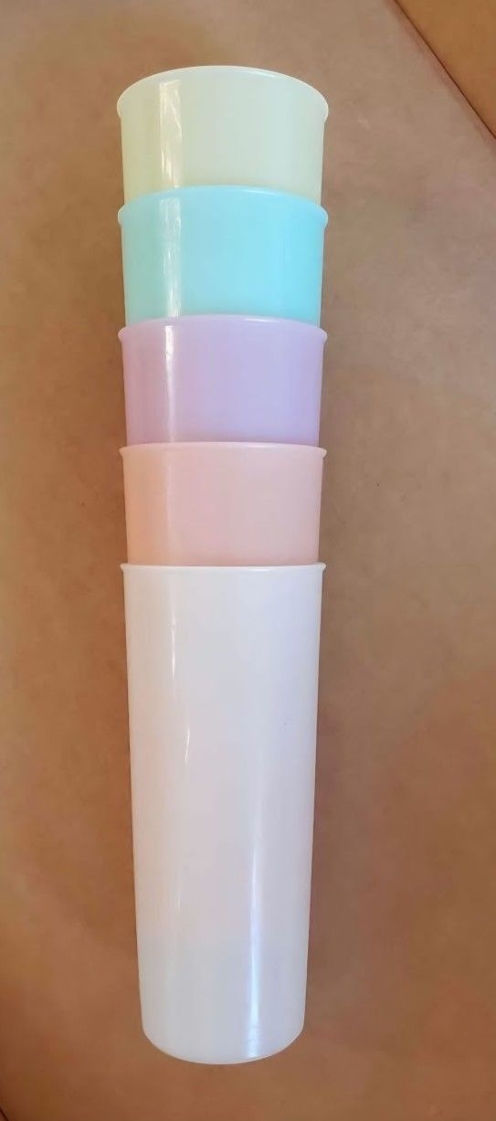 Set of 5 vintage collectible pastel Tupperware 16 oz. Tumblers. Tumblers only - no lids included. Great condition