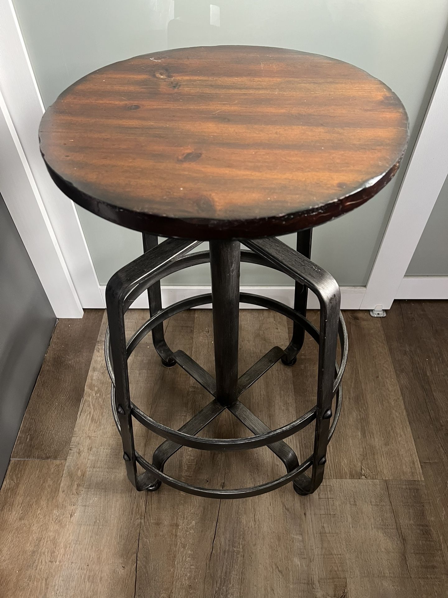 25”-31” height from floor to seat adjustable bar stools. Metal base and wood top Price is for both