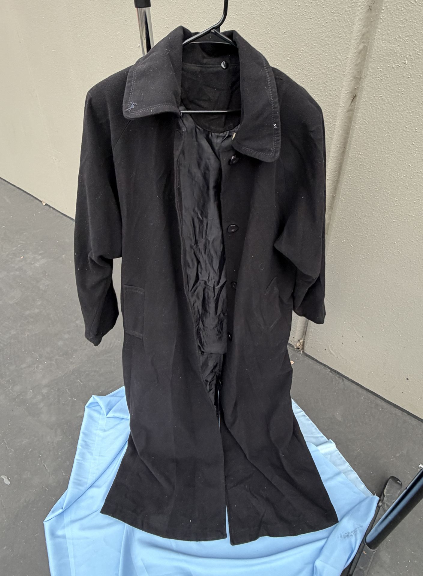 Black Button Closure Point Collar Solid Long Men's Overcoat Regular Size