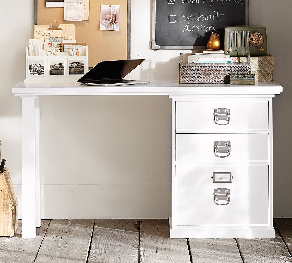 Bedford Single Cabinet Writing Desk (52") Originally over $1000 new Great used condition. Drawers are smooth. A few scratches that could easily be covered with a white paint pen Pick up only. Located in sammamish by QFC. First come first serve Antique White is made of kiln-dried pine and veneers and finished with brushed-nickel bail pulls. Crafted of pine, a gorgeous softwood with a closed grain pattern. Kiln-dried wood helps prevent warping, splitting, cracking and developing mildew. The use of veneers results in high-quality furniture with elegant surfaces and consistent color tones. Features artisan-crafted details such as solid wood drawer boxes crafted with English dovetail joinery and smooth ball bearing glides. File drawers hold legal- or letter-sized files and are equipped with heavy-duty side-mounted guides. File guides can also be removed for regular drawer storage. The 2-drawer cabinet features two file drawers Drawers can be installed either on the left or right side of desk. File drawers have label frames to help keep you organized. Desk is not finished on all sides or designed to float in room. Back of desk is finished and able to float within the room. Adjustable levelers help with stability on uneven surfaces. Anti-tilt guard prevents both drawers on the file cabinet from being pulled out at the same time.