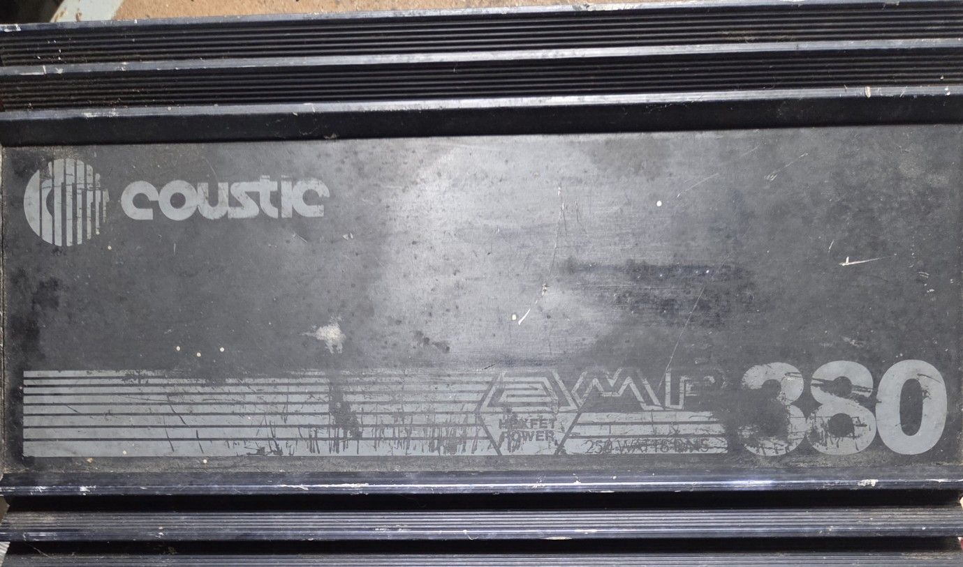 Coustic 380 amp. Condition unknown, was a left at a rental house.