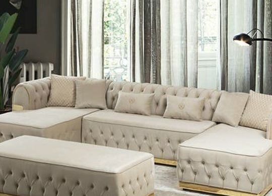 Jester Velvet Ivory Double Chaise Sectional without Ottoman