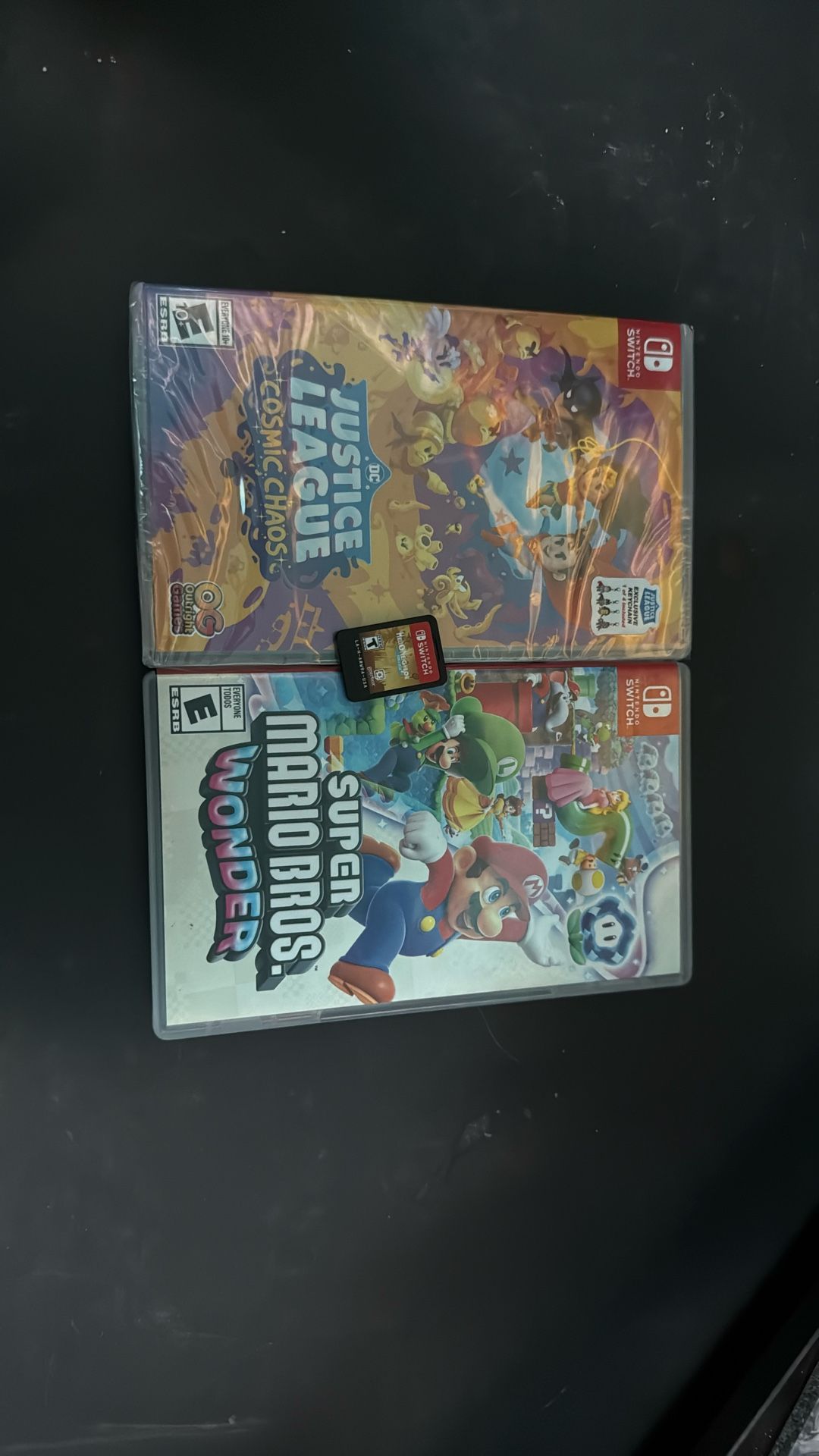 DC justice league cosmic chaos is brand new Super Mario Bros Wonder case and game Hello Neighbor game only $50 for all 3