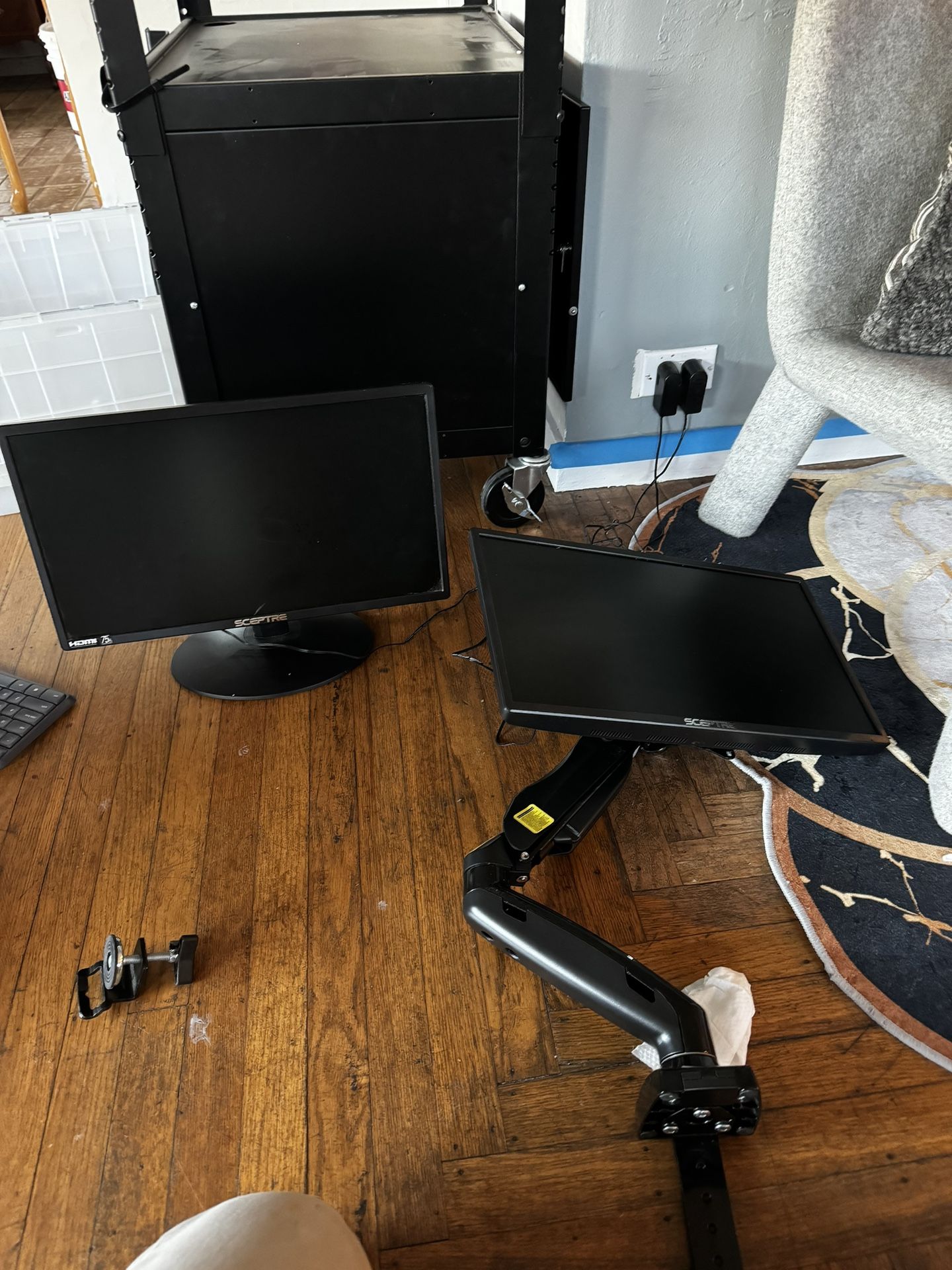 Both work just as new. One has stand and the other just has the monitor arm . The monitors go for around 50-60 brand new and I’m asking for 50 including the monitor arm. Pretty fair price for the 2