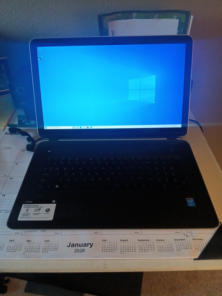 17.3 in screen. Windows 10. Works with charger. Has a dufflebag/case with it.