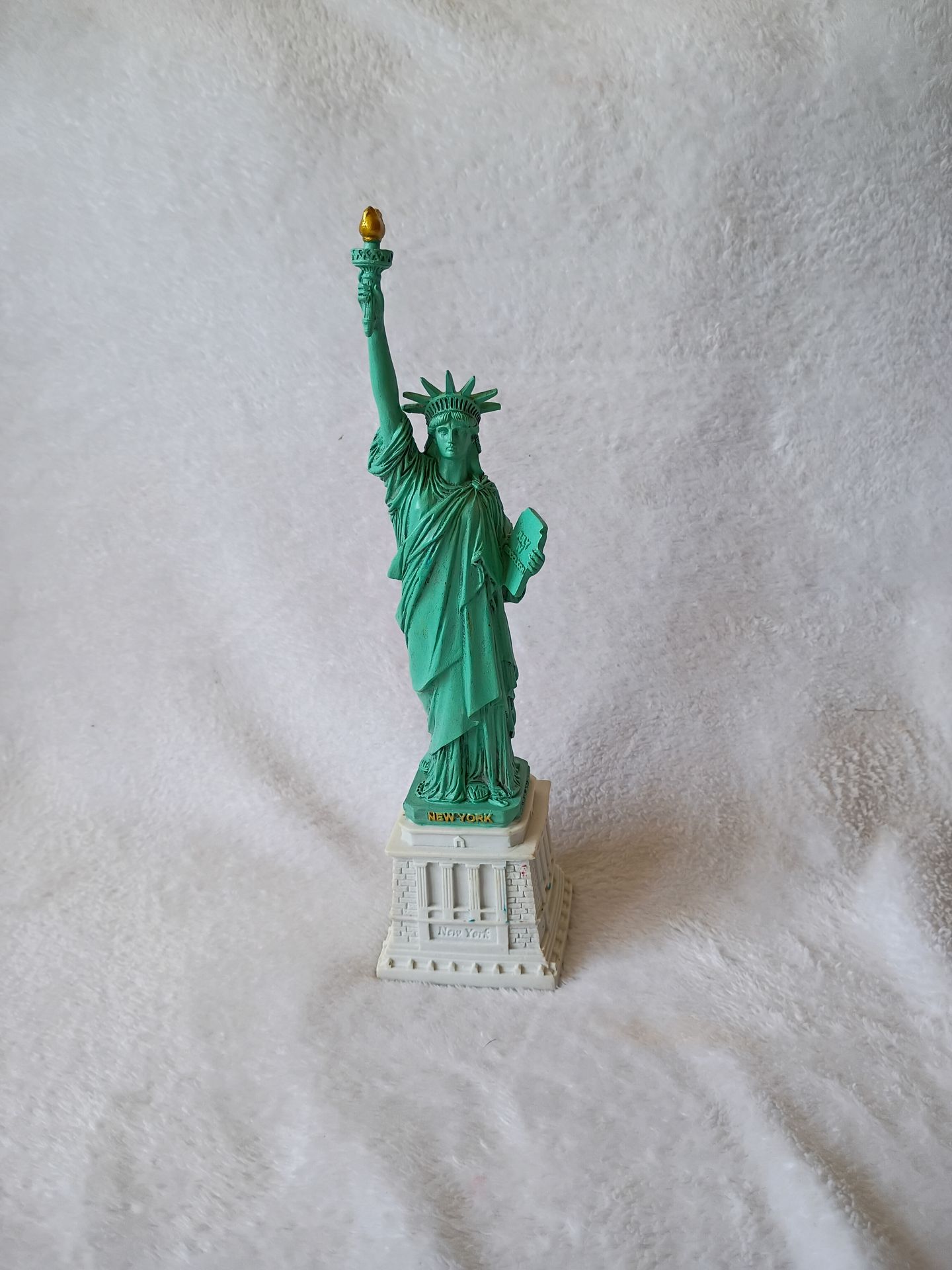 This Statue is made with Polyresin Material. The statue of liberty figurine is built with many details and text inscriptions such as " New York" "Statue of Liberty" and "Torkia". This Figurine imitates the real-life Statue of Liberty detail by detail from the crown, torch, "JULY IV MDCCLXXVI" tablet and other notable things associated with the Statue of Liberty. No chips or cracks see pictures for more details.