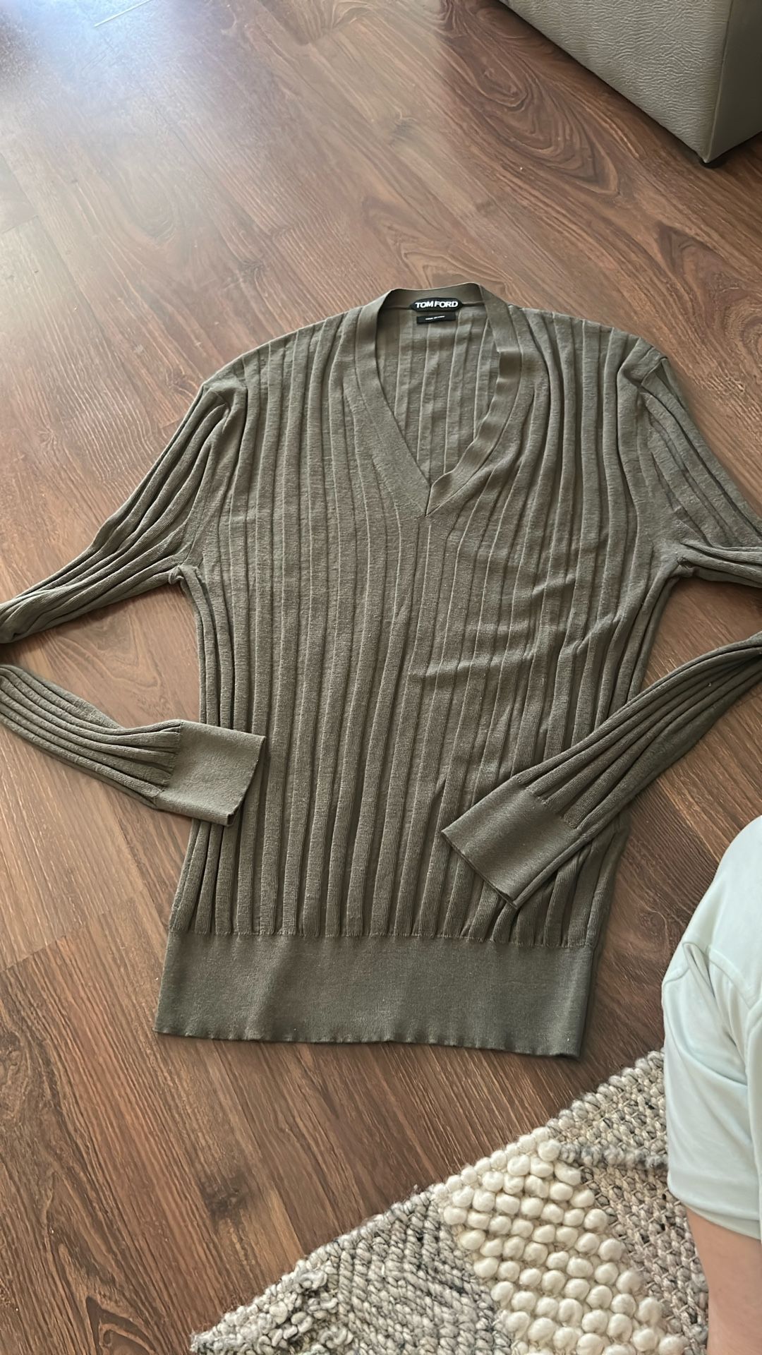 Tom Ford V-neck, cashmere long sleeve sweater with ribs and rib bottom beautiful Hunter green.