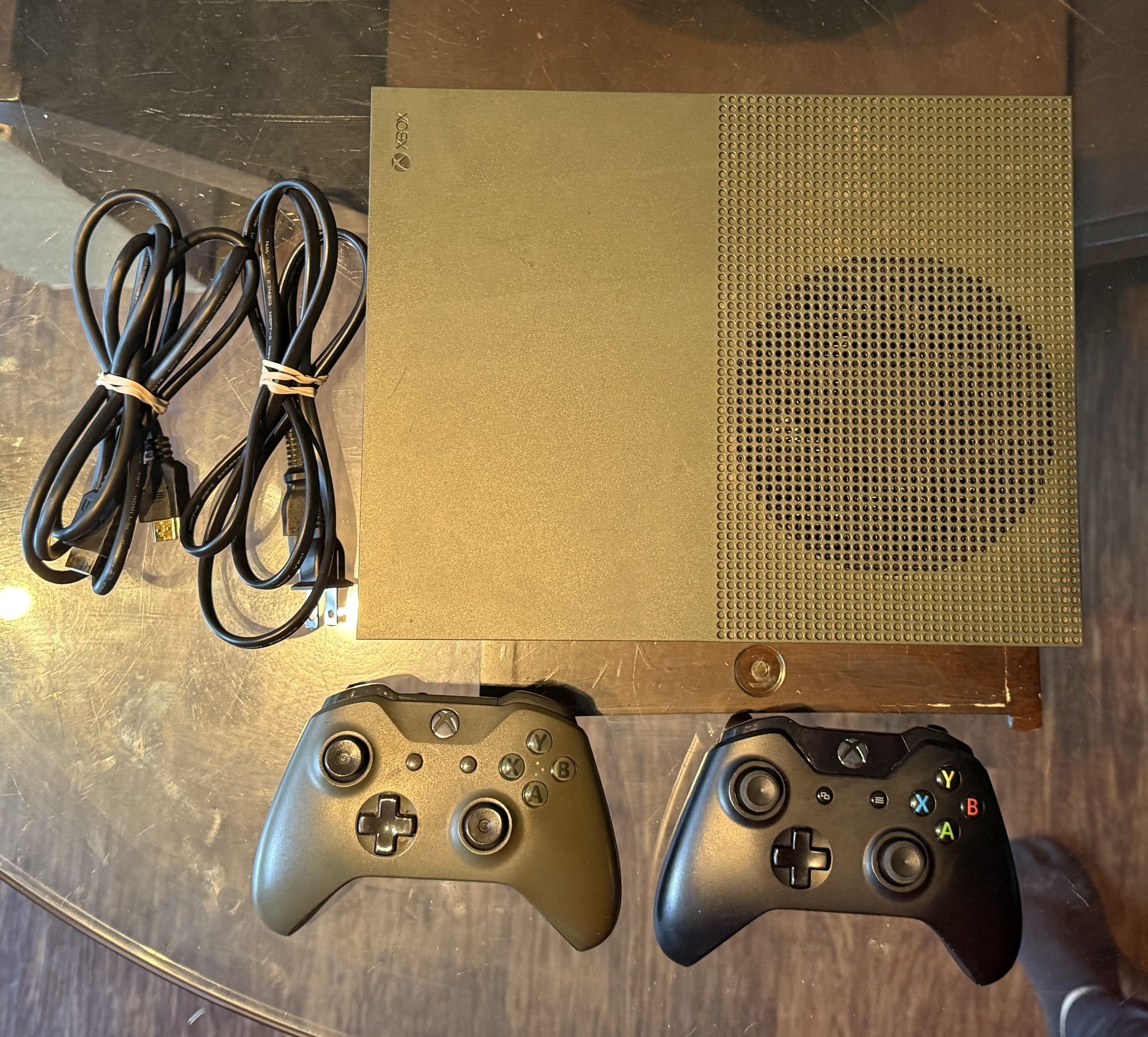 Good condition console some scratches on it but no cracks, tested and runs well. Comes with power and HDMI cables, 2 controllers. Controller 1, limited edition battlefield missing rubber on thumb grips. Controller 2, works great with new thumb sticks. Price is OBO, trades welcome including trades for electronics in non working condition for credit. Xbox, PlayStation, Nintendo, CRT, super, 64, sega, Dreamcast, Genesis, Microsoft