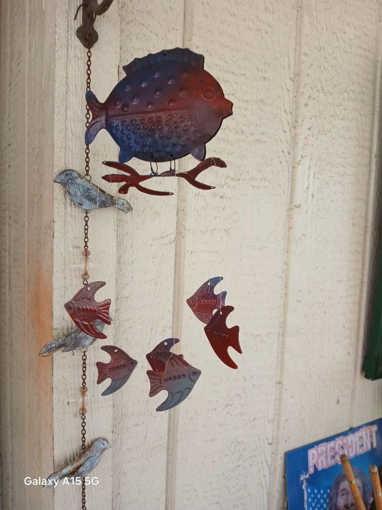 Vintage metal, Fish Windchime with multiple hanging fish, has a soft sound to it in the wind Only $25.00