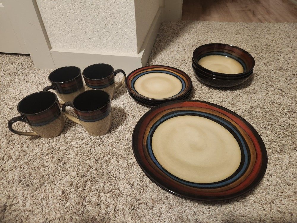 Galaxy Red color Used but in good condition. Great gor college kids or as spares. Only 3 bowls with set, 4 large plates, 4 small plates, and 4 coffee mugs Make an offer if priced too high Normally new set $55-110