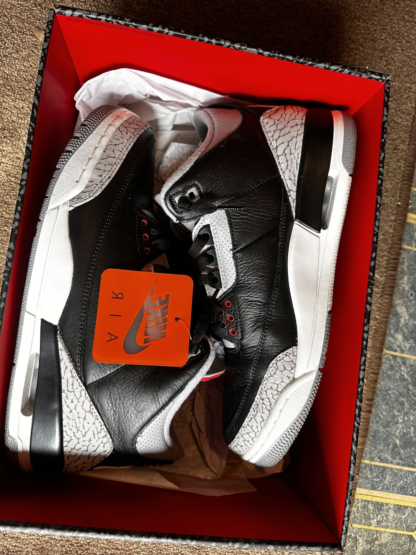 I have these retro black cement 3s in very great condition sz 11,5 only worn 2x of box and papers hit me up need to sell hopefully by today!