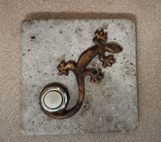 This is for a wired doorbell , from an artist at the Tempe Festival for the Arts. Copper lizard doorbell on stone . Functional