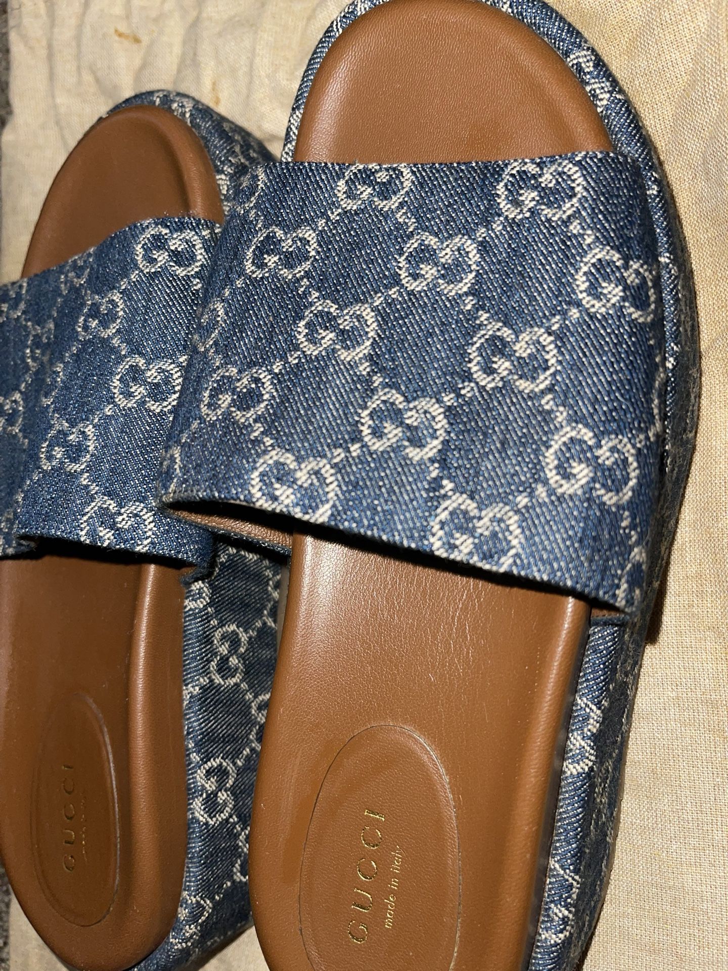 Women’s size 37 ; worn once, couldn’t fit after pregnancy. Comes with Gucci bag.