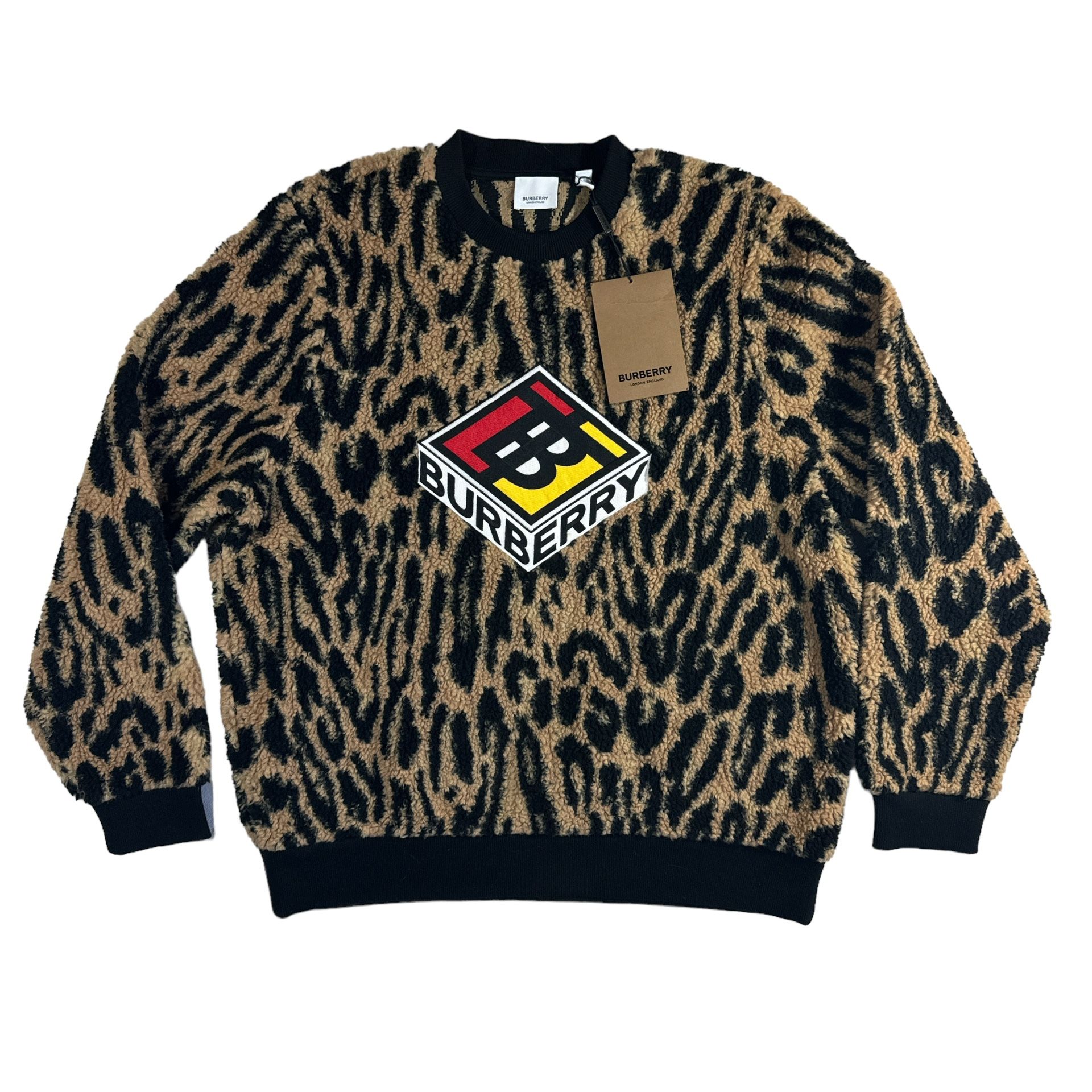 NWT Burberry Leopard Print Fleece Sweater -Size Medium -9/10 Condition!!! (New With Tags, Small Stain On Logo -Large Embroidered Logo On Front -Single Stitch -Authentic Designer -Leopard Print All Over Measurements Shoulders: 18 Inches Pit To Pit: 24 Inches Length: 28 Inches Sleeves: 26.5 Inches