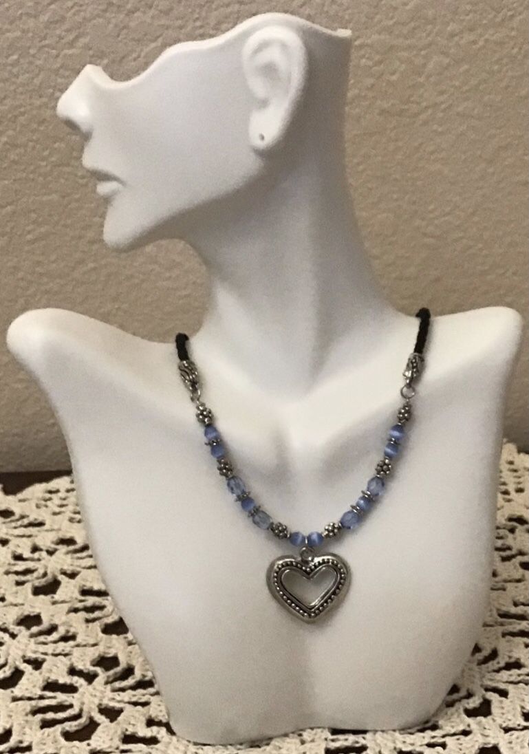 NWT Vintage Cookie Lee Genuine Cat’s Eye, Braided Leather Necklace with a Heart Charm