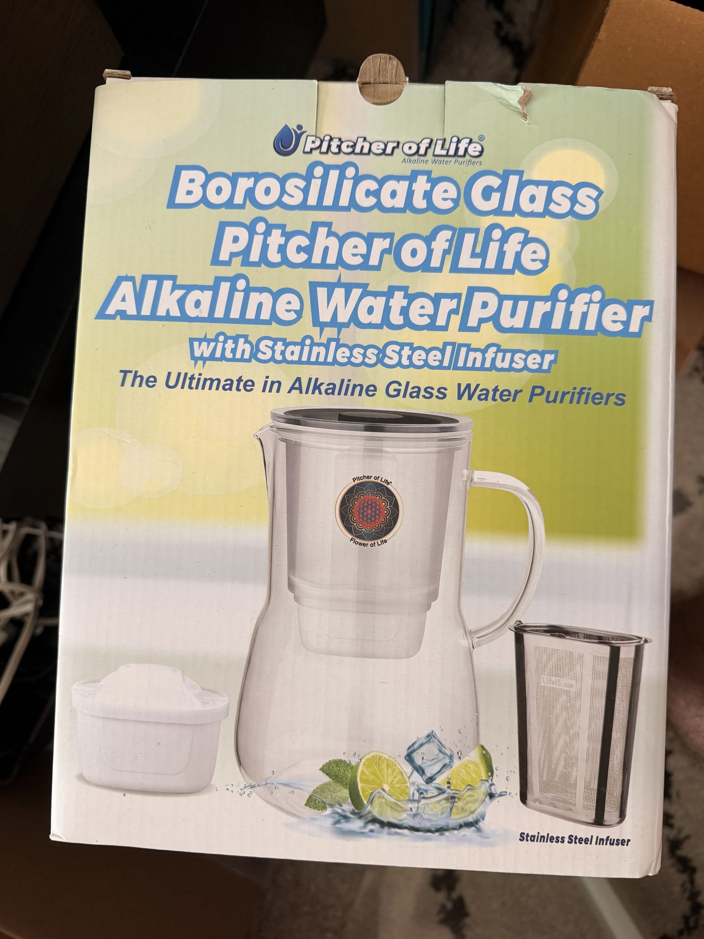 Glass alkaline water filter pitcher