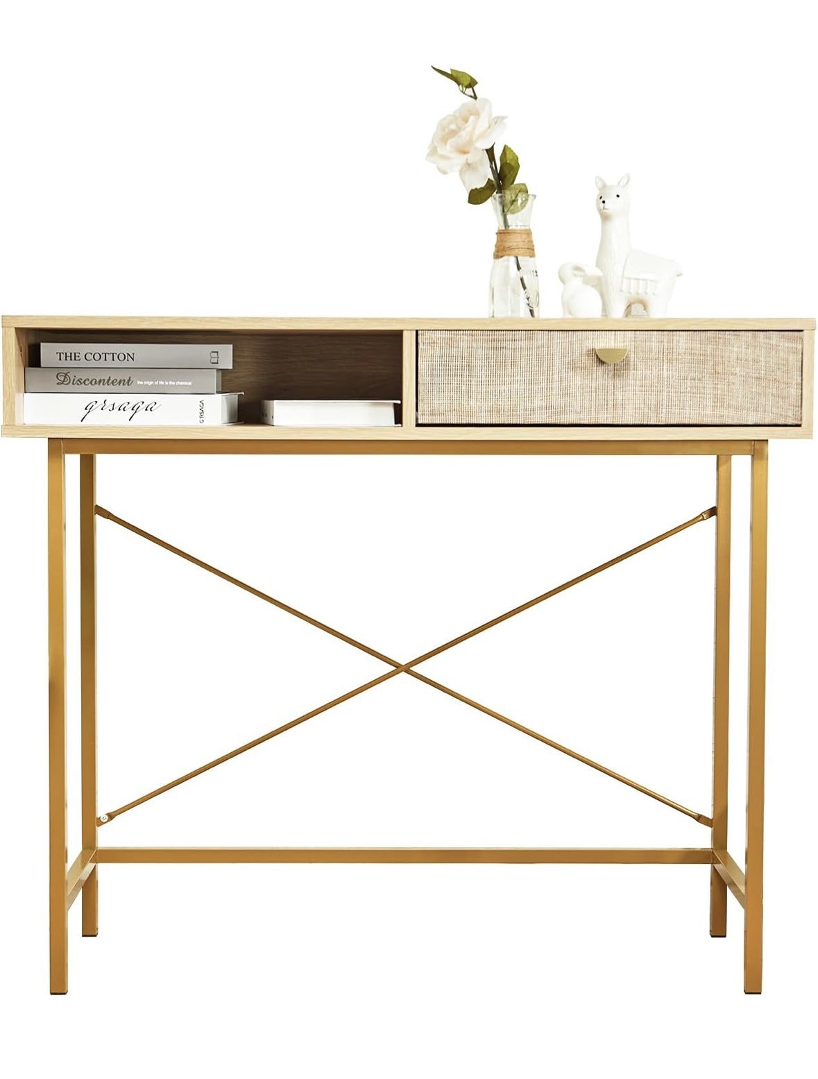 Console Table with Drawers, Linen Accent Sofa Table Entryway Table with Storage Shelf for Entryway, Hallway, Living Room