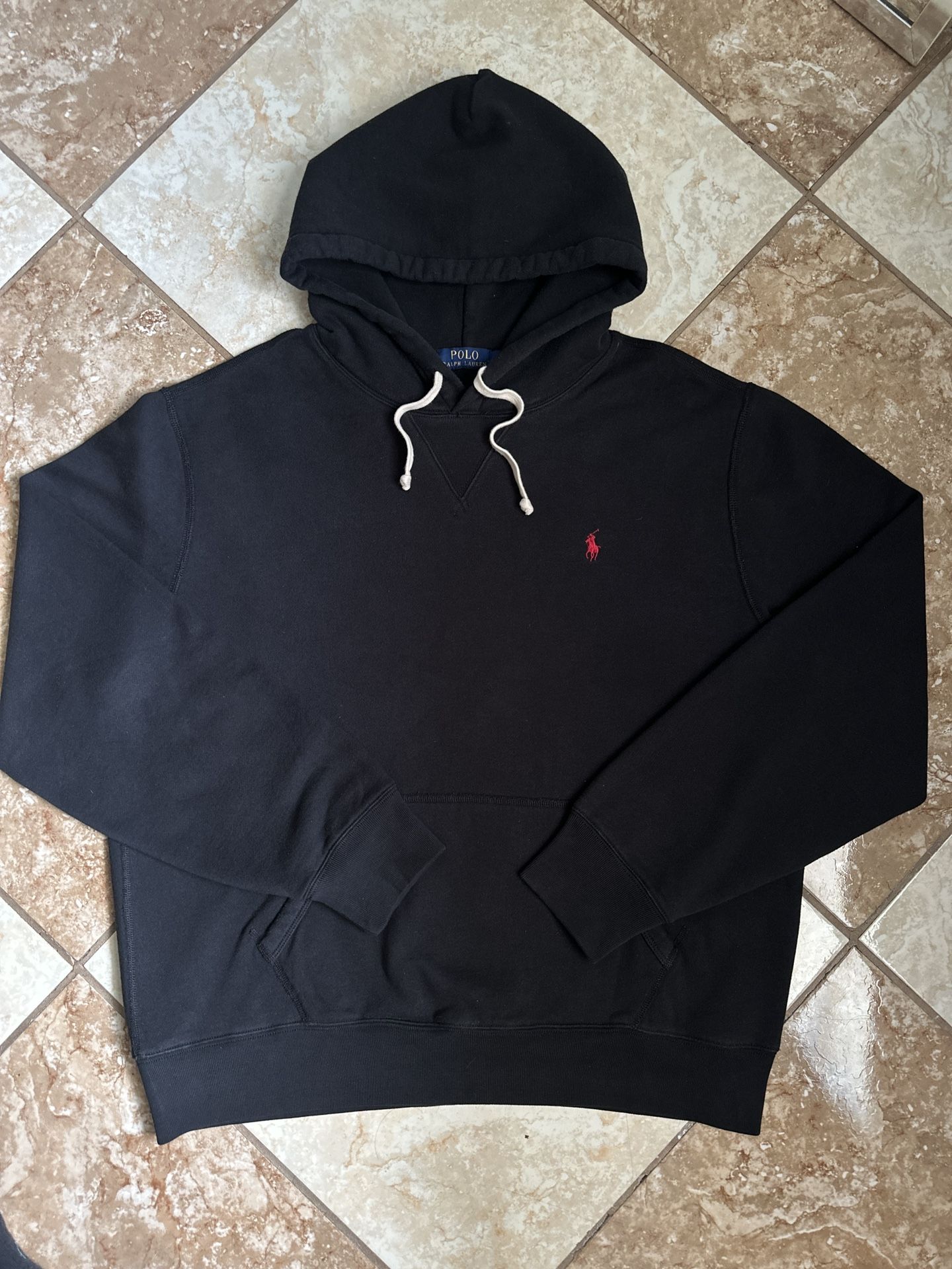 Black thick heavy weight polo Ralph Lauren hoodie size large. It is in amazing condition has no rips tears. The inside of the hoodie is covered in soft cotton not like the regular zip ups that have the thick material that feels uncomfortable. This hoodie is the most comfortable you could get, which is the reason it’s over $120. Please dm me if you have any questions or concerns