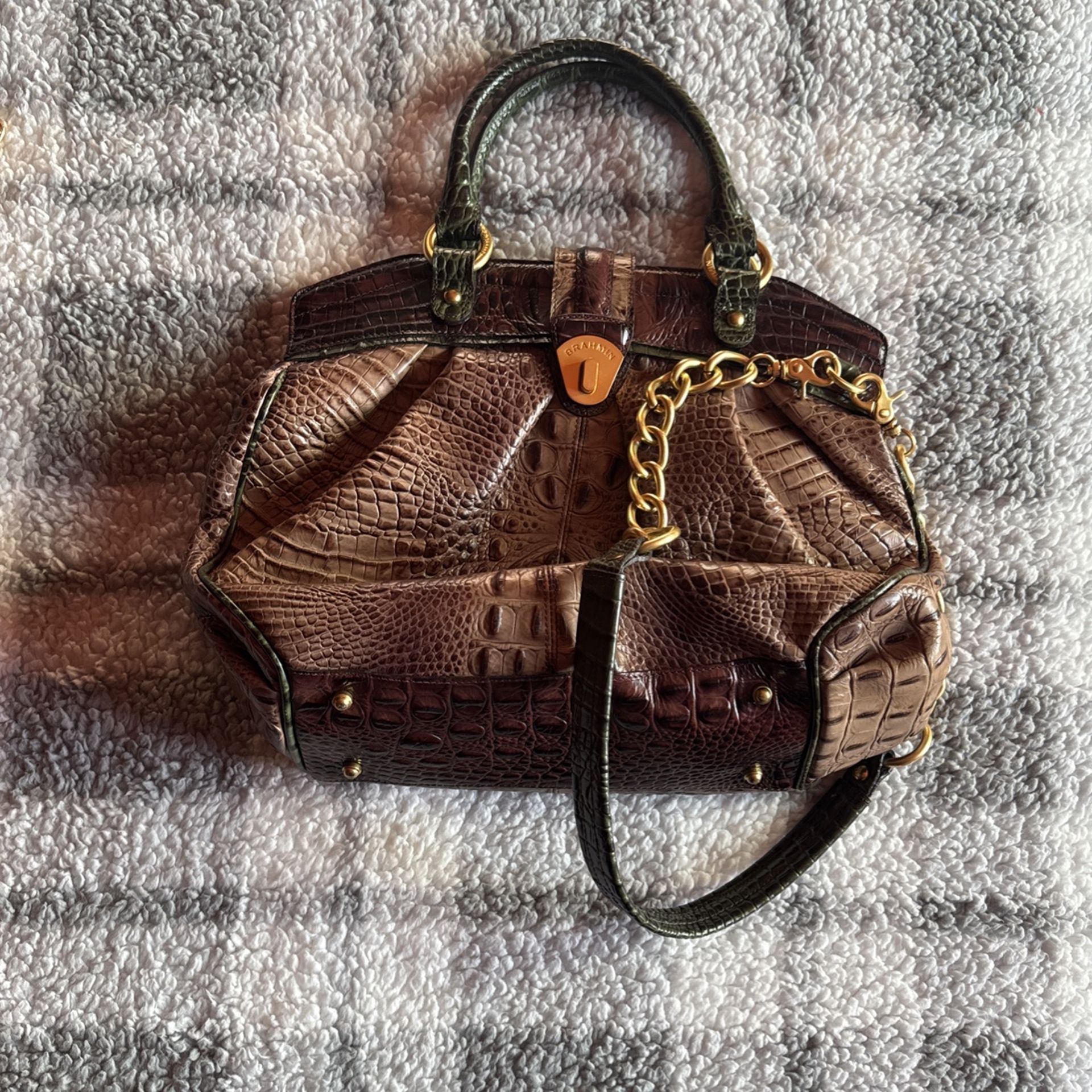 Brahmin Adora Tri Color Mocha Truffle Emerald Green Leather Satchel Shoulder Bag. No damages. Looks new, like never worn.