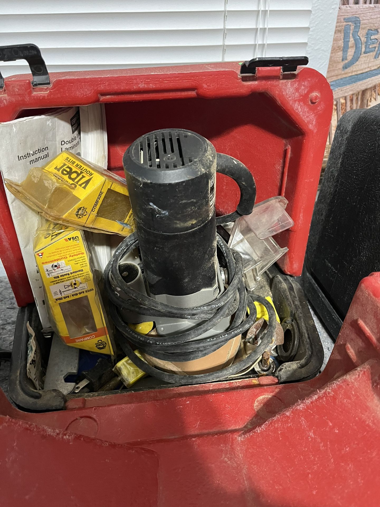 Porter-Cable 7301 HD Power Unit Trim RouterLaminate Trimmer Kit with Accessories in good working condition. This powerful tool is perfect for those looking to trim and cut laminate with ease. The unit is corded electric and has a voltage of 110 V with a power of 5.6 Amps. The kit includes a variety of accessories to make the job easier and more efficient.