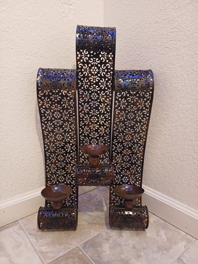 3 Candle Holder Wall Decor, Metal Measurements: 26" height 14" width $20 OBO