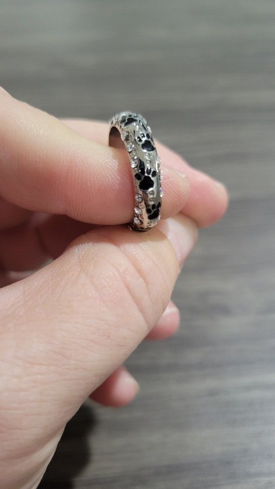 Silver Paw Print And Gem Ring
