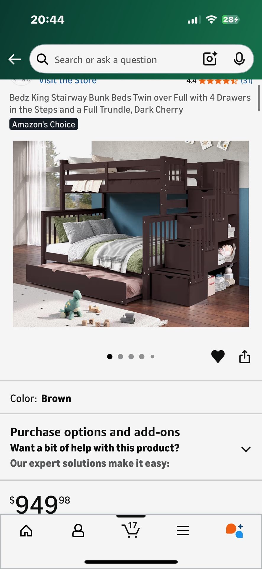Bedz King Stairway Bunk Beds Twin over Full with 4 Drawers in the Steps and a Full Trundle, Dark Cherry