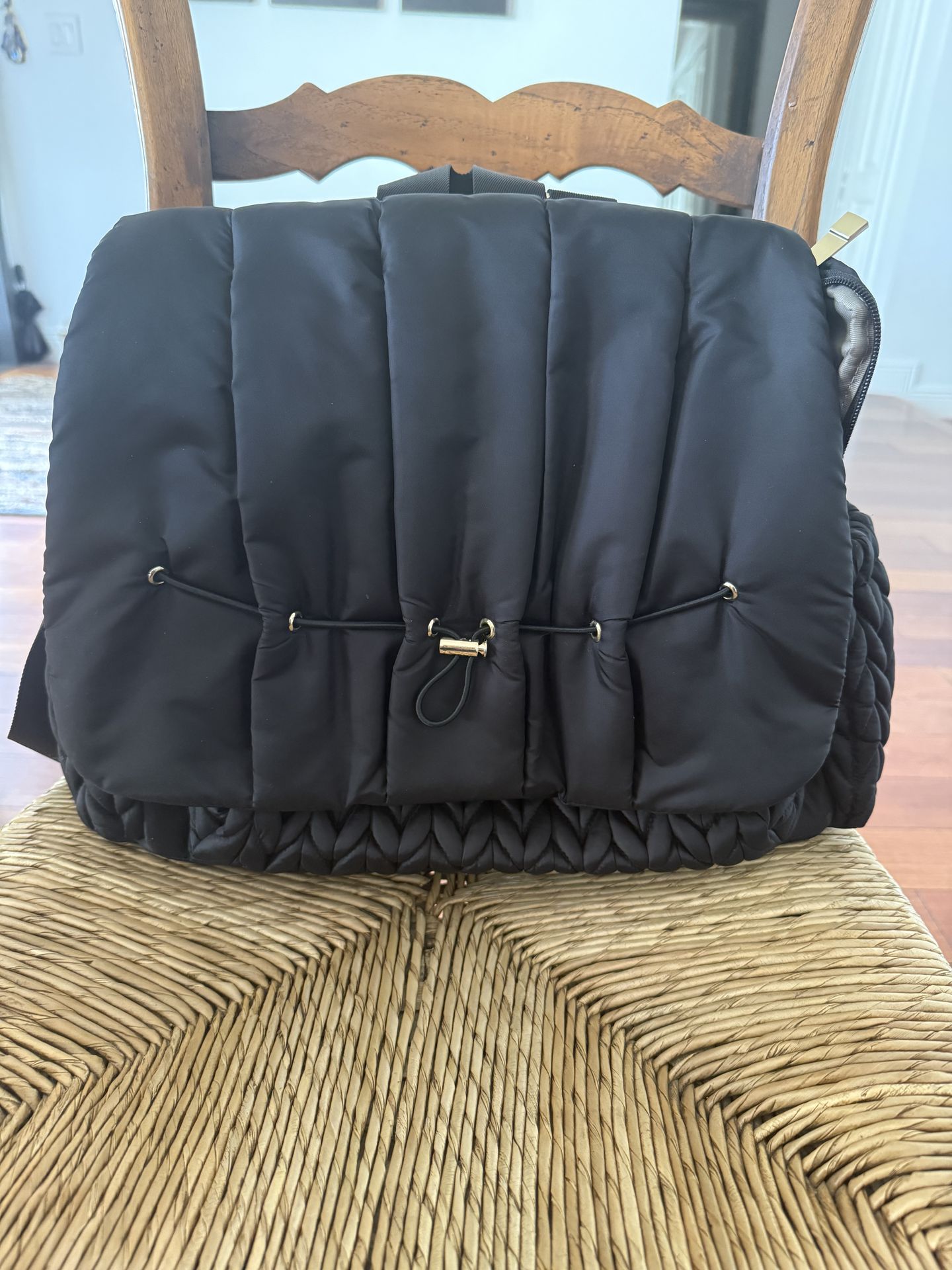 The Levy Backpack Black is a modern, versatile diaper backpack praised for its chic design, stylish appearance, and ample storage space. Customers appreciate its lightweight material, convenient pockets, and comfortable straps Tags have been removed, but has not been used