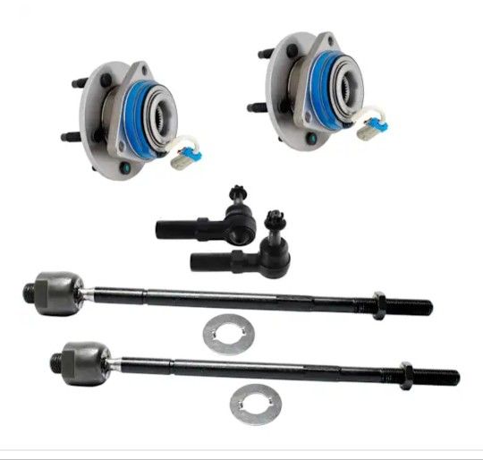 TrueDrive 2000 Cadillac DeVille DTS - 6-Piece Kit Front, Driver and Passenger Side Wheel Hub, Steel Wire Clip - Bearing Flange Mounting Holes Threaded, FWD, Sedan, 5 Lugs, With Bearing, With Sensor, Includes (4) Tie Rod End and (2) Wheel Hub