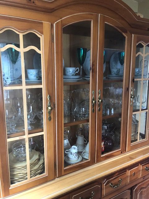 Items inside are not included. Lighting works, Very good condition and located in Lynnwood. Measurements of base and top: H 6’6” W 9’8” D 2’8” Glass shelving with lights Base and top detachable