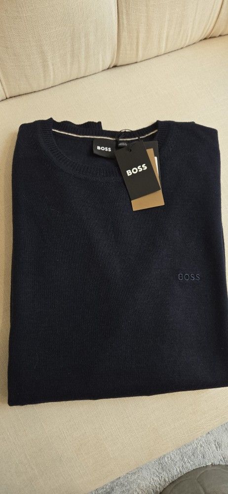 Brand New Navy Hugo Boss Knit Crew Neck Long Sleeves Men's Sweater. Size Medium