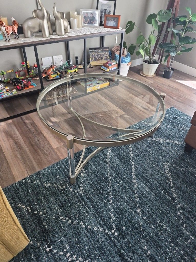 Measurements are 56 in wide and 17 in tall. Great looking coffee table