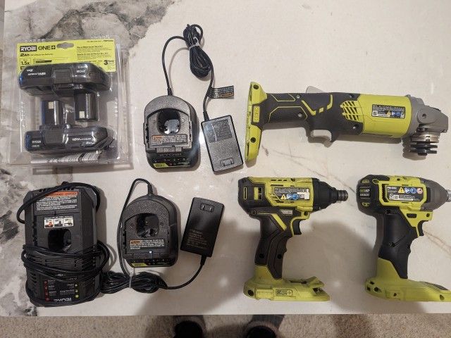 Ryobi Impact Drills + Angle Grinder + New Batteries + Chargers