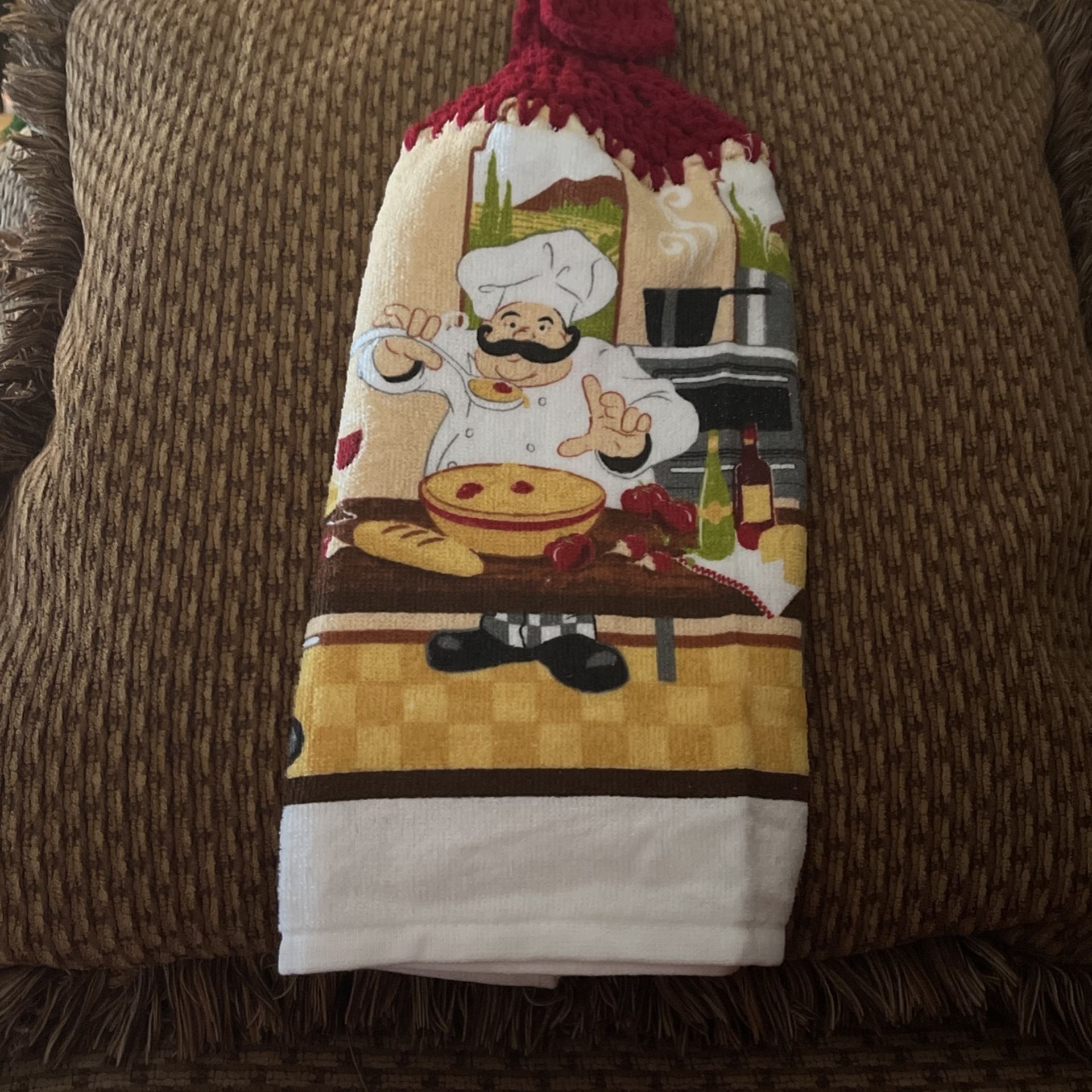 Handmade chef towel full towel can hang on oven door or kitchen cabinets or refrigerator makes nice deco or gift smoke free home $6 each