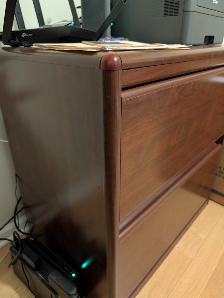This is a Sauder Furniture 2 tier file cabinet. Height 30.5 Depth 19.5 Width 30.5