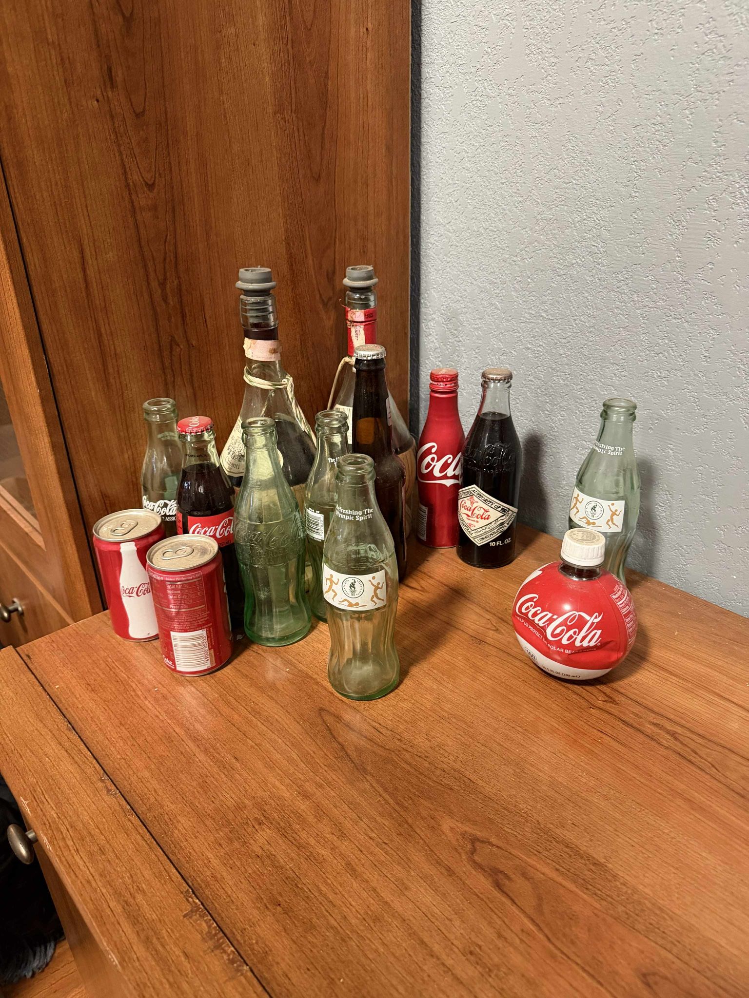 Older coca cola collection pieces for sale. Some glass bottles. Some empty, some unopened. Price is for the entire lot.