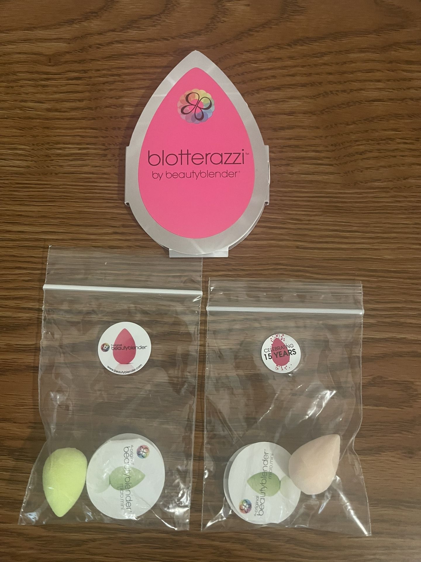 1 - Blotterazzi reusable blotting sponge 2 - Micro mini makeup sponges Never used