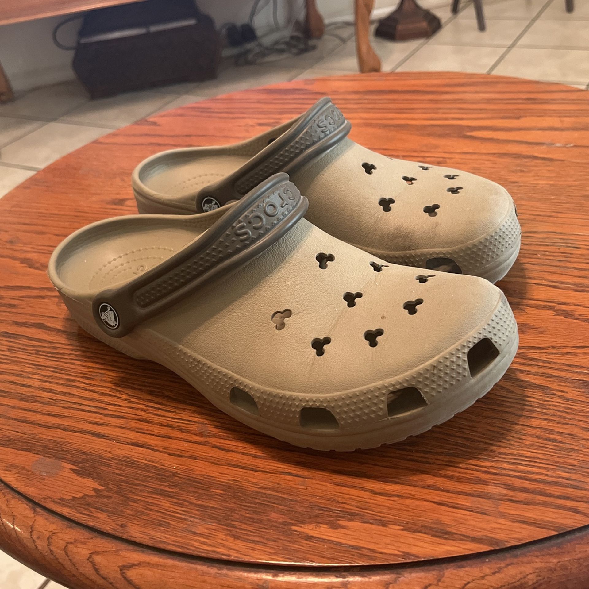 Disney Mickey Mouse Crocs. Mens size 8 (fit more like a 9). Womens size 10. Hardly used. Just need to be cleaned.
