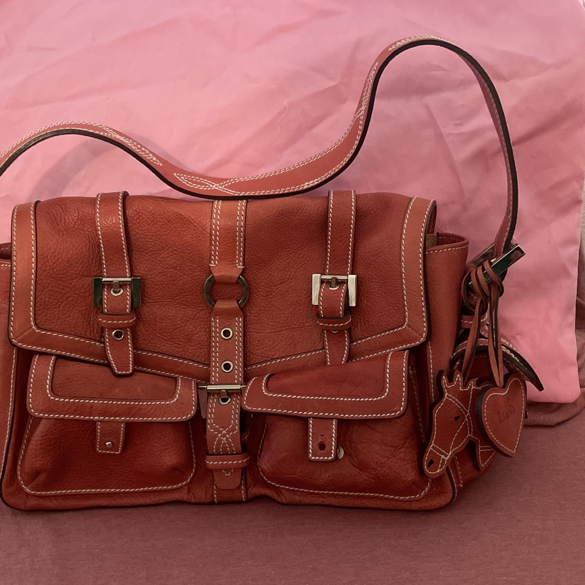 Authentic leather handbag in new condition.