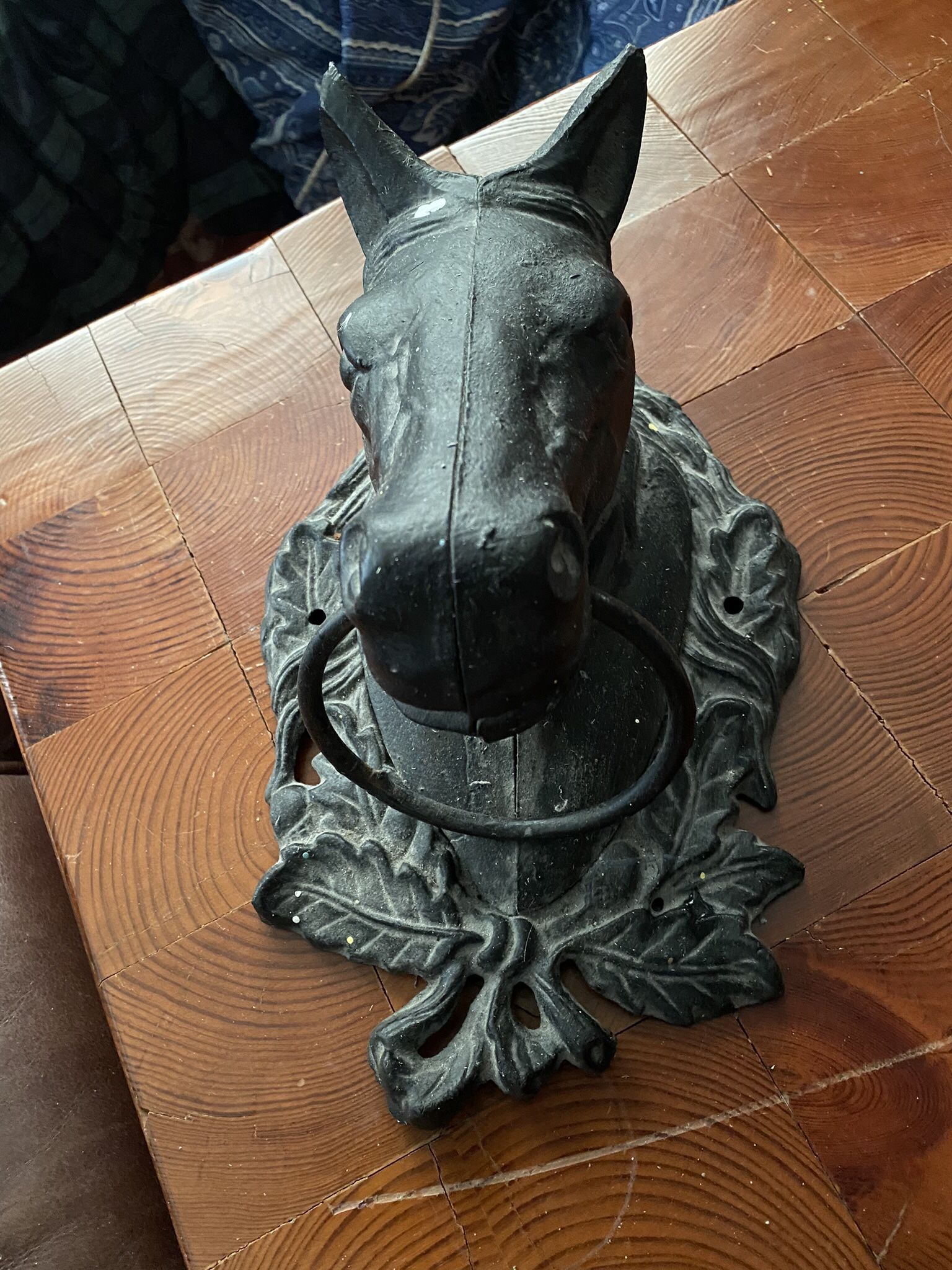 Vintage Antique Black Cast Iron Horse Head Wall Mount Hitching Post Barn Decor. Perfect for Garden