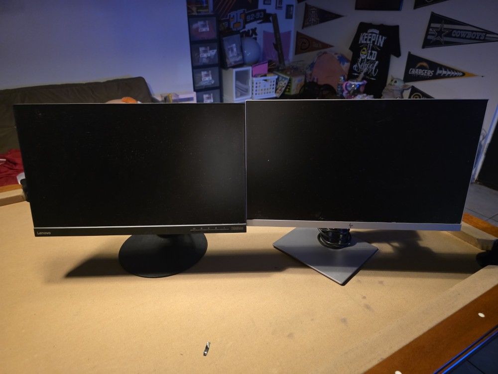 2 24 Inch Monitors HP And Lenovo