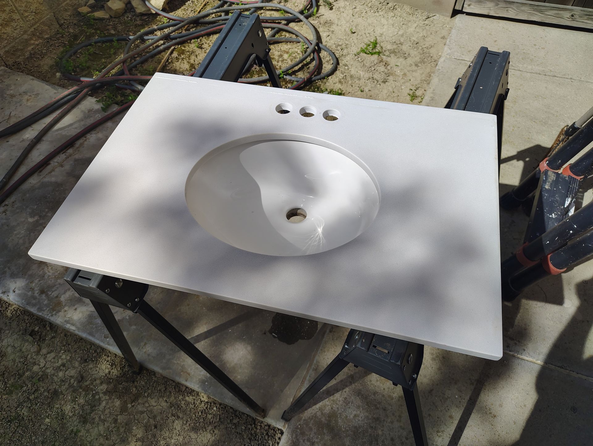 For 30" vanity. Used but excellent, clean immaculate condition. No longer need after replacing a vanity. No chips or cracks or stains. Excellent condition! See pics for dimensions. Pickup is in Chino hills near veterans park. Bathroom Vanity Sink Top with Three Holes, Engineered Stone Quartz Solid Surface Vanity Sink Top with Overflow, Drop in Bathroom Vessel Sink Rectangle