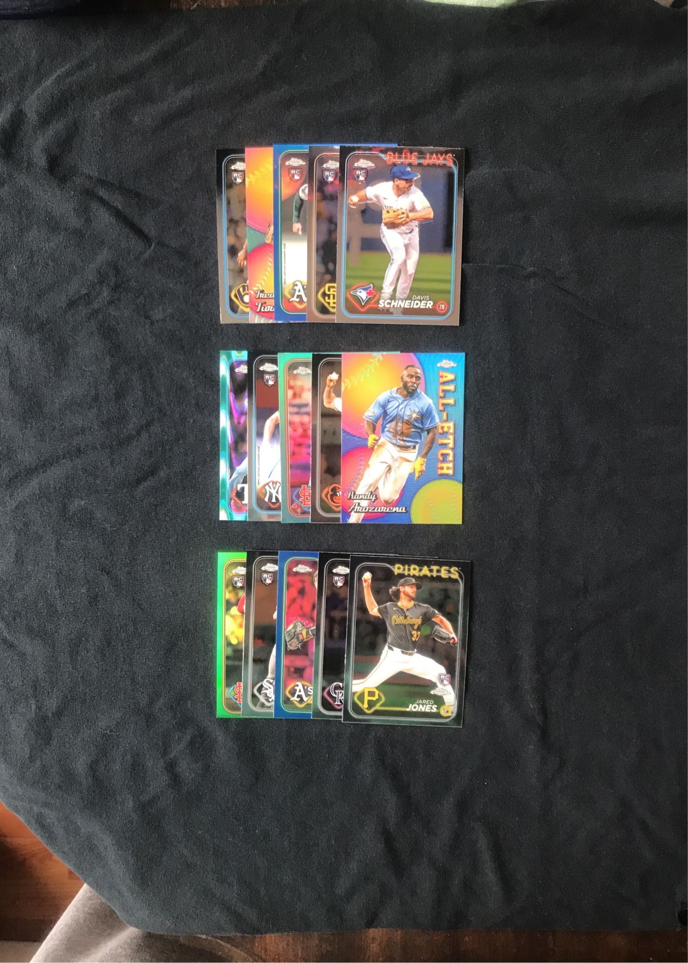 15-Topps Chrome 2024 Hit Cards! 1-Autographed Low Numbered Refractor 1-Autographed Card 4-Color Low Numbered Cards 7-Top Rookie Cards 2-Insert Cards All cards raw, in mint to near mint condition! Ready to be graded!!! Cards come in a hard case! Mystery Lot!!!