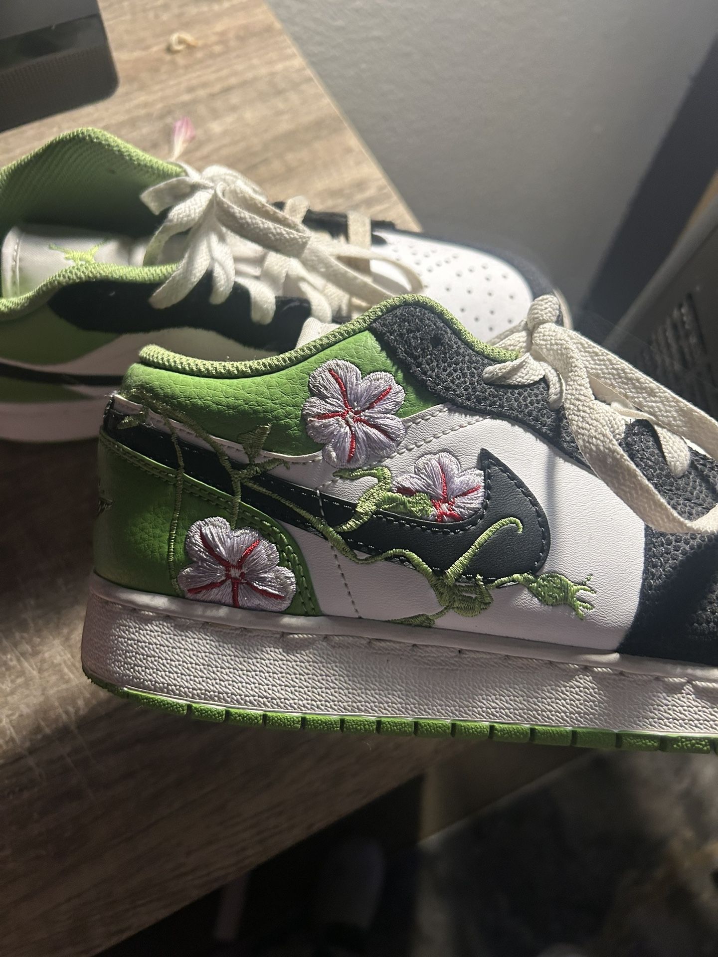 green black jordan with flower design ( Not Worn ) W size 6.5 with box