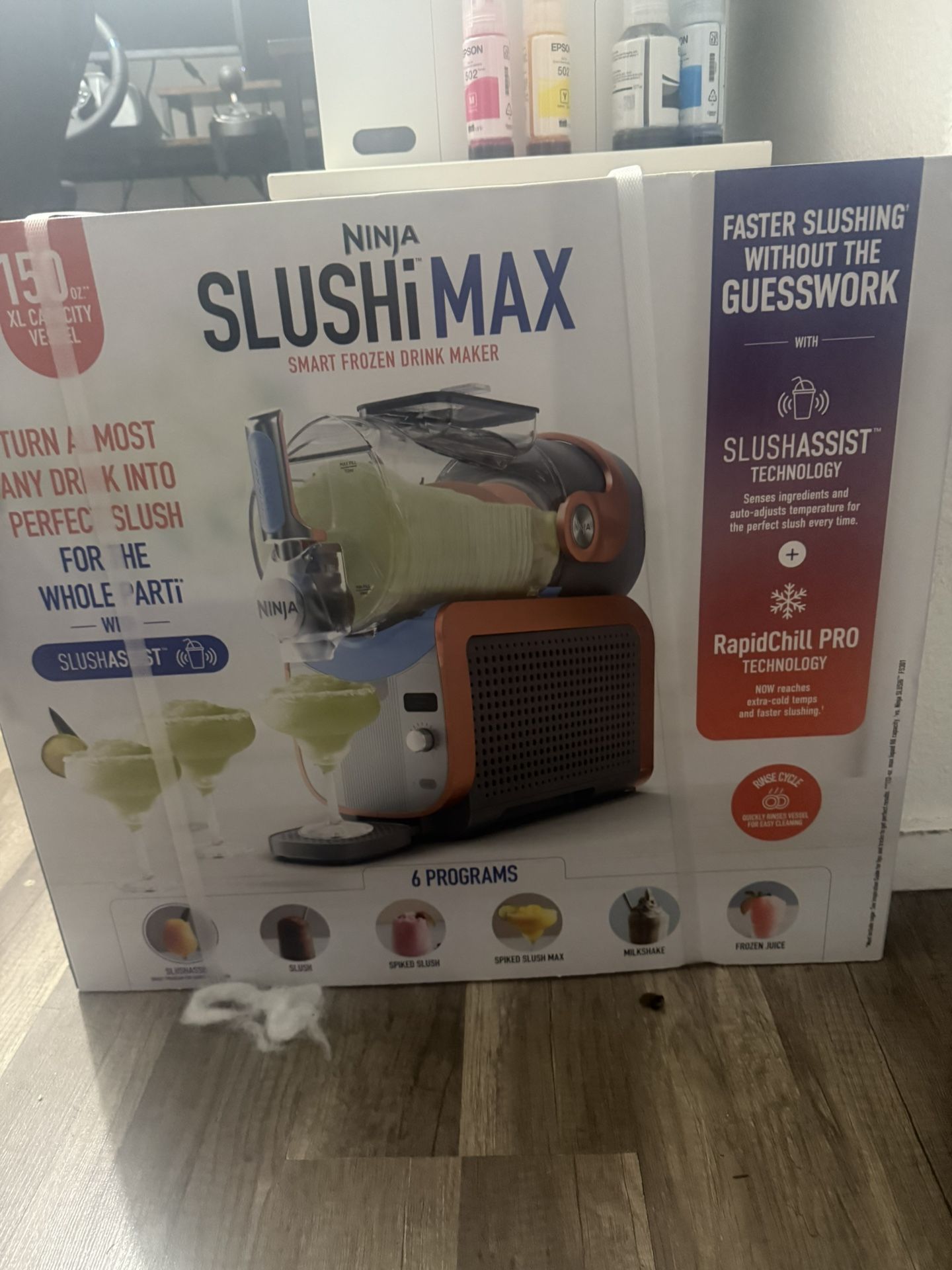 The Ninja SLUSHi Max is a large, smart, ice-free frozen drink maker with a 150-ounce capacity, designed to create slushies, milkshakes, and cocktails using its SlushAssist Technology that senses ingredients and auto-adjusts settings for perfect, consistent results, offering more powerful cooling, higher alcohol tolerance (up to 20% ABV), faster freezing, Dishwasher-safe parts, and a quiet Whisperchill Compressor to keep drinks cold for hours.